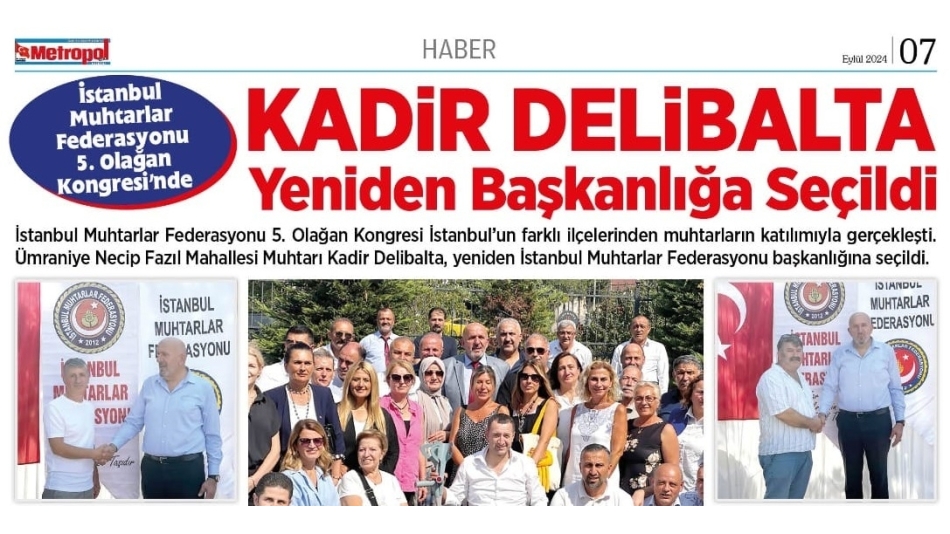 Ümraniye Necip Fazıl Mahallesi Muhtarı Kadir Delibalta, yeniden İstanbul Muhtarlar Federasyonu başkanlığına seçildi.